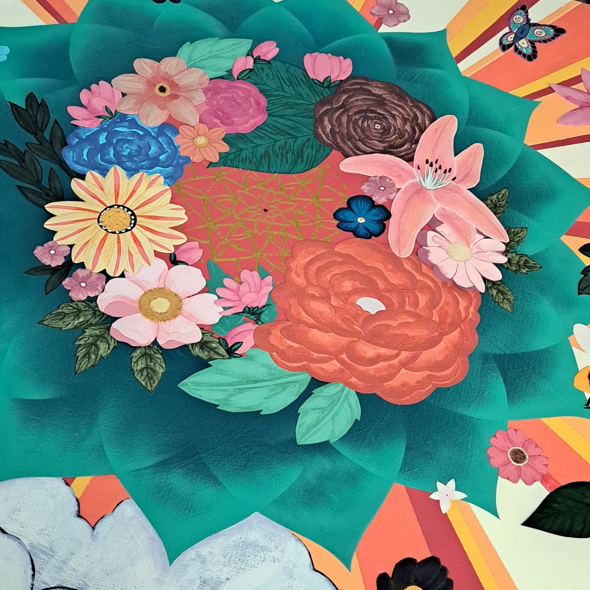 It’s taken such a long time to bring all the elements together as I tended to work on this one only when I was bringing my best self & loving energy. I wanted this piece to bring the sunshine & warmth to other woman, that I have needed on my darkest days.